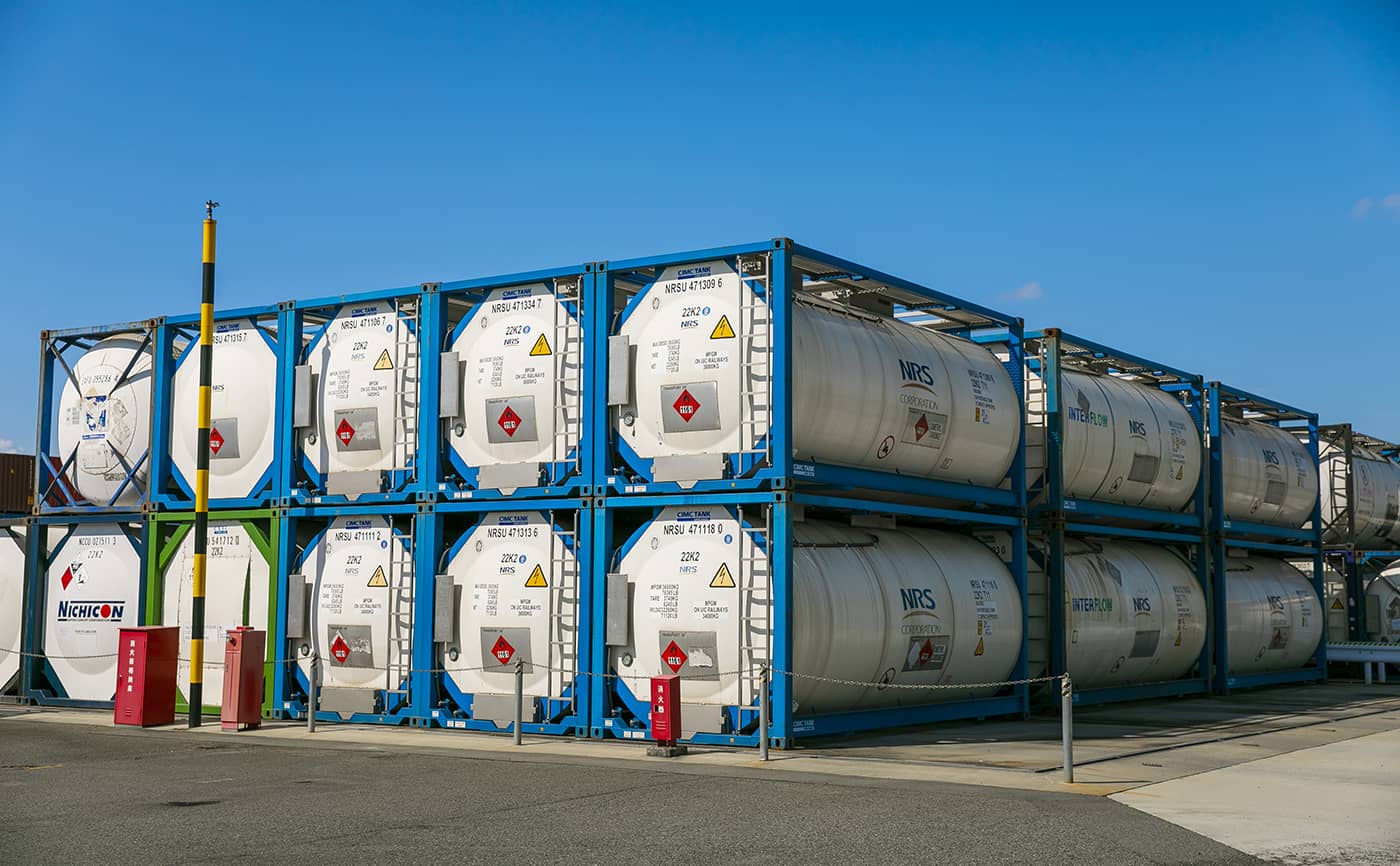 We provide consistent services essential to the import, export and transportation of chemical products, including tank container storage, customs clearance, heating and cleaning. Of course, we can also provide individual services matched to customer requests. Because our Van Pool is in a good location close to the major terminals of Port of Nagoya, it is optimal for the carrying in and out of tank containers when exporting or importing. In addition, because we have various equipment and technology to handle chemical products, we store and manage customers’ cargo safely and accurately.